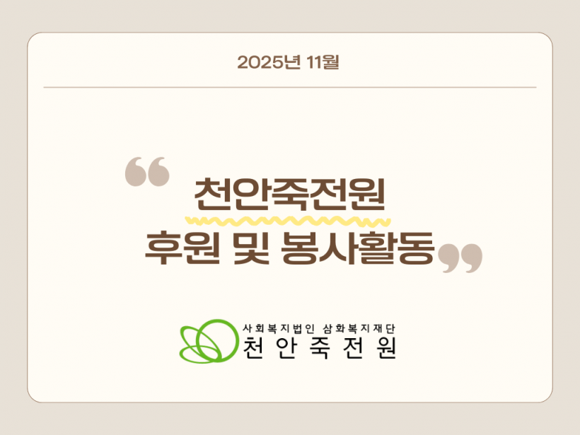 [11월] 후원 자원봉사 페이지 정보 작성자 운영자 작성일25-12-02 11:13 조회186회 댓글0건 관련링크 목록 본문 2025년 11월 후원 및 자원봉사입니다.마지막 12월 감기 조심하시고 잘 마무리 하시길 바랍니다.감사합니다. 댓글목록 등록된 댓글이 없습니다. 목록