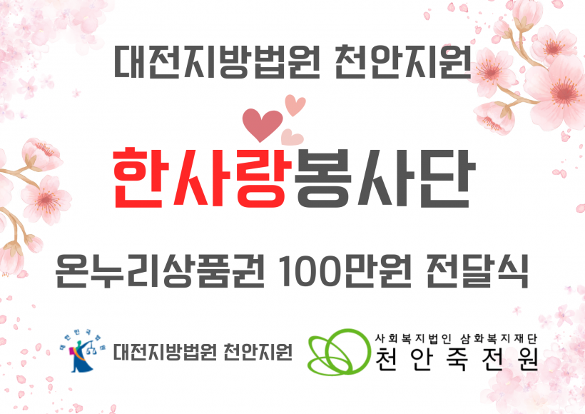 대전지방법원 천안지원 한사랑봉사단에서 방문해주셨습니다.