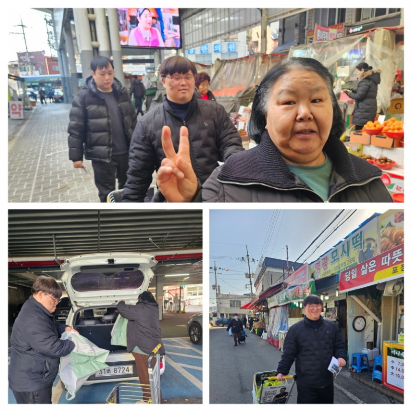 활동에 앞서 이용인들은 ‘내가 사고 싶은 재료’를 사진으로 직접 골라보며 장보기 계획을 세웠습니다. 이후 시장으로 이동해 선택한 재료를 하나하나 찾아 구입하며, 물건을 고르고 계산하는 경험도 해보았습니다.
